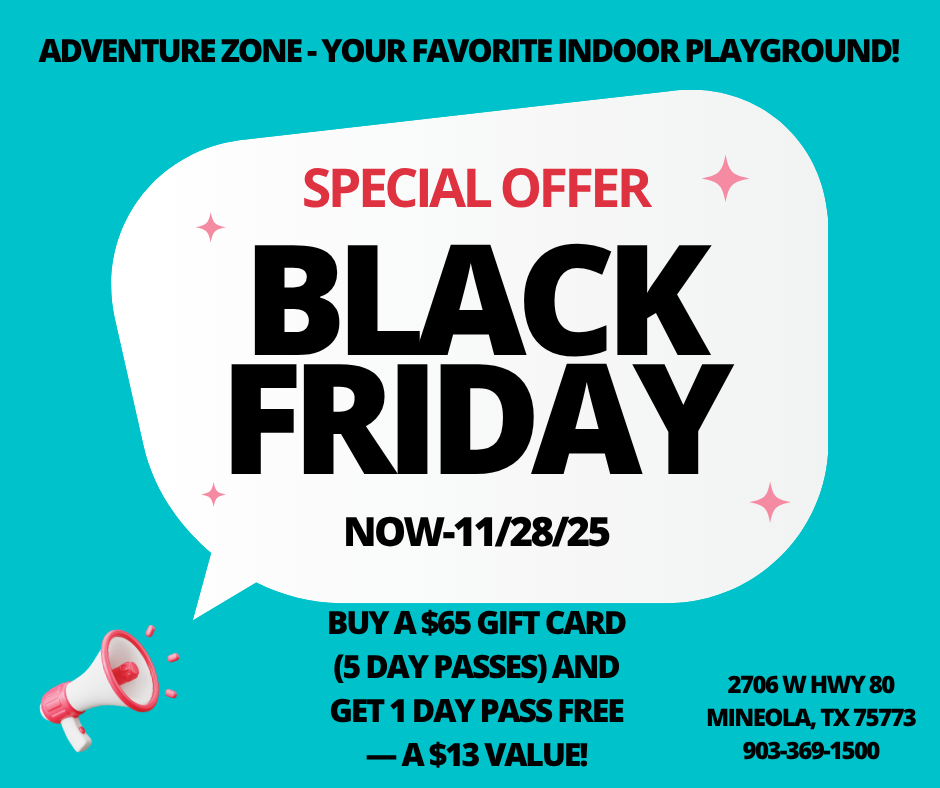 Adventure Zone is perfect for parents who want fun, affordable ways to keep their kids active in Mineola and the surrounding East Texas area.